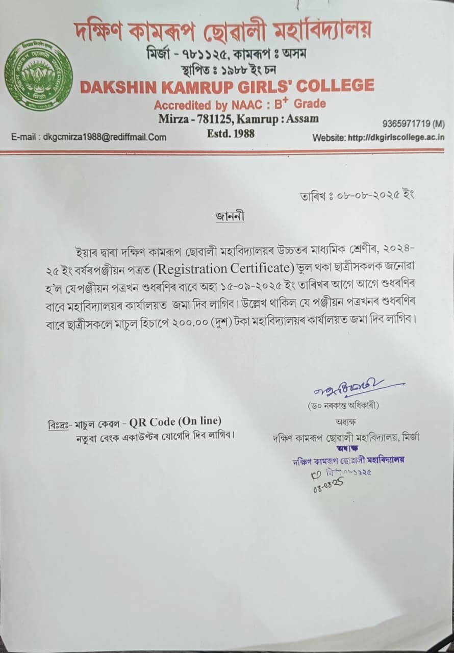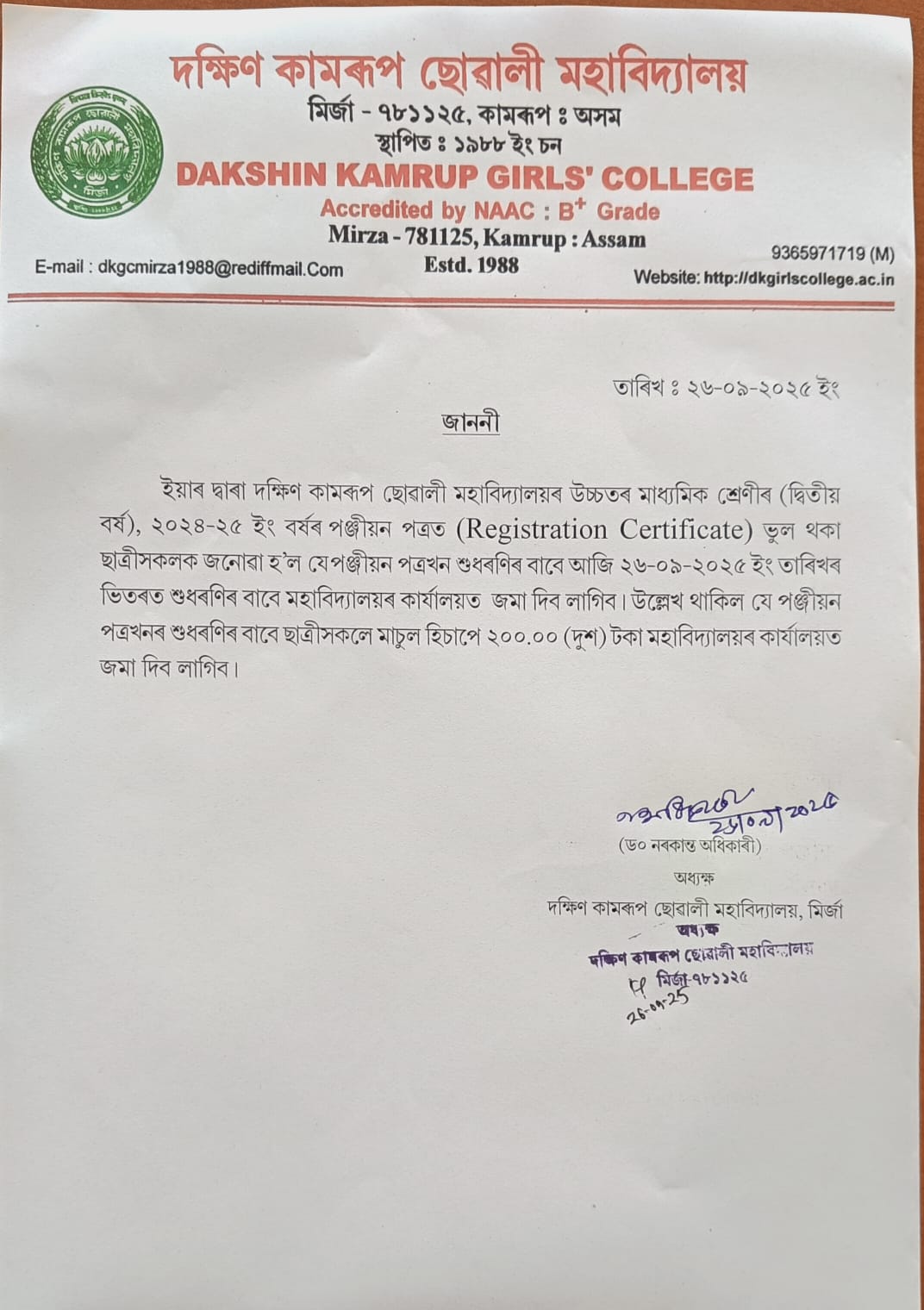 Dakshin Kamrup Girls' College is located in the sylvan environs of Mirza. It is the only educational institution for girls, in entire south bank of the river Brahmaputra towards the west of Guwahati...
